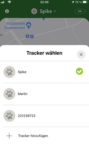 Um mehrere Tracker mit einem Smartphone verbinden zu können, musst du einfach in der Tracker App auf den Namen deines Lieblings klicken, der im oberen Bereich der App angezeigt wird.